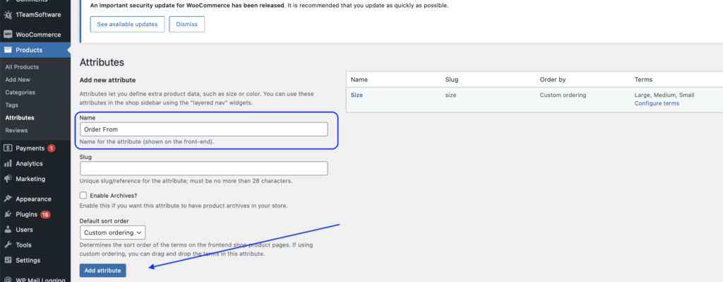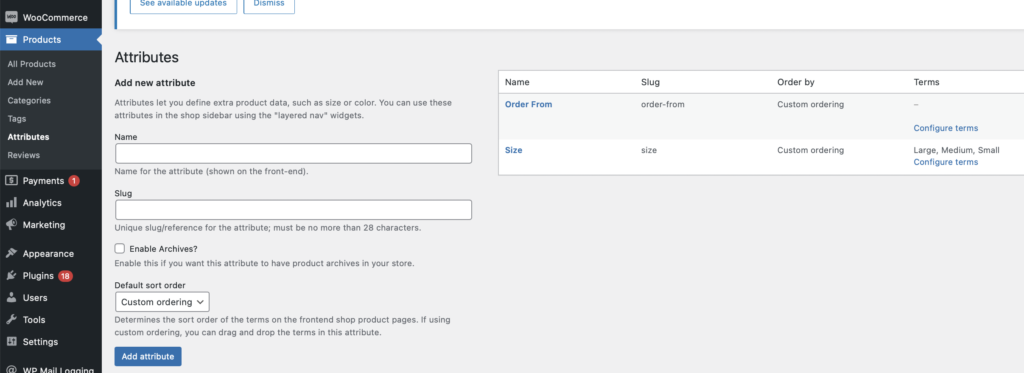 Creating a New Attribute in WooCommerce