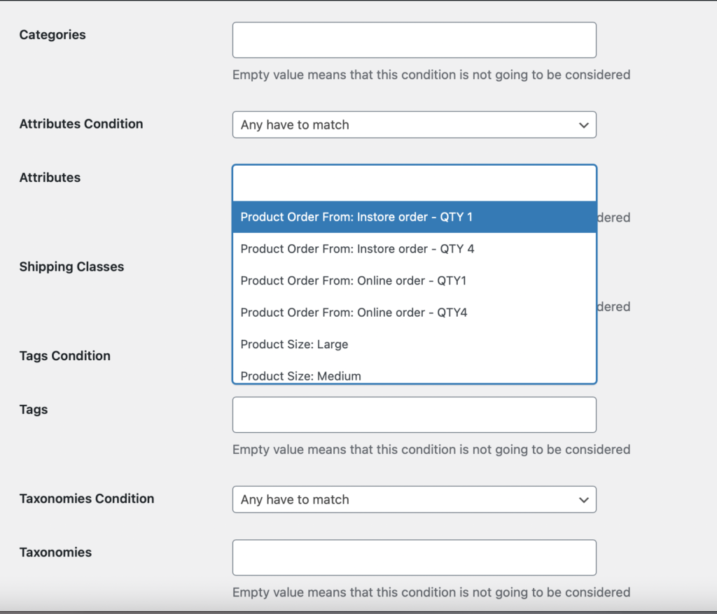 - Select “Any have to match” in the attribute condition.