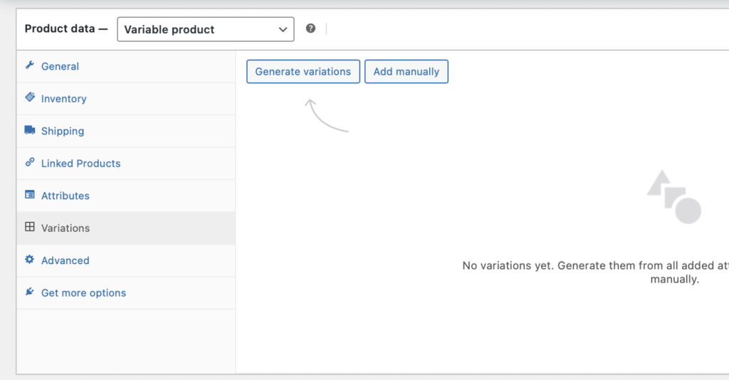 - Ensure you have set this product as a “Variable product” in the product data.