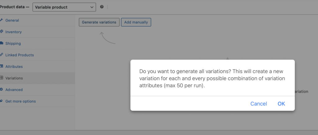 - You will see a pop-up window asking if you have to generate all variations.