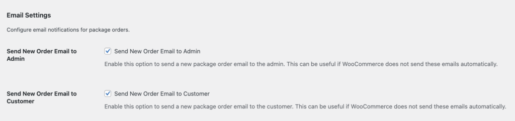 Once you navigate to the correct location, you will find that the settings of Package Order for WooCommerce plugin are underneath the Shipping Packages pluginβs settings.
