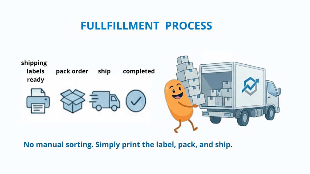 No manual sorting. No manual label creation. Just pack and ship.