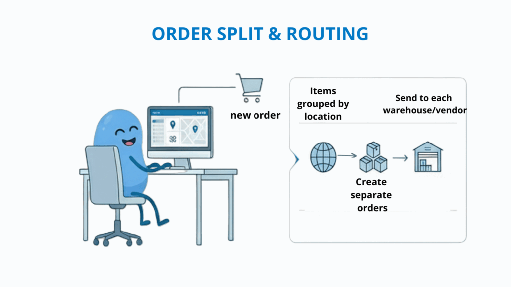 - Separate orders created → Sent to each warehouse/vendor