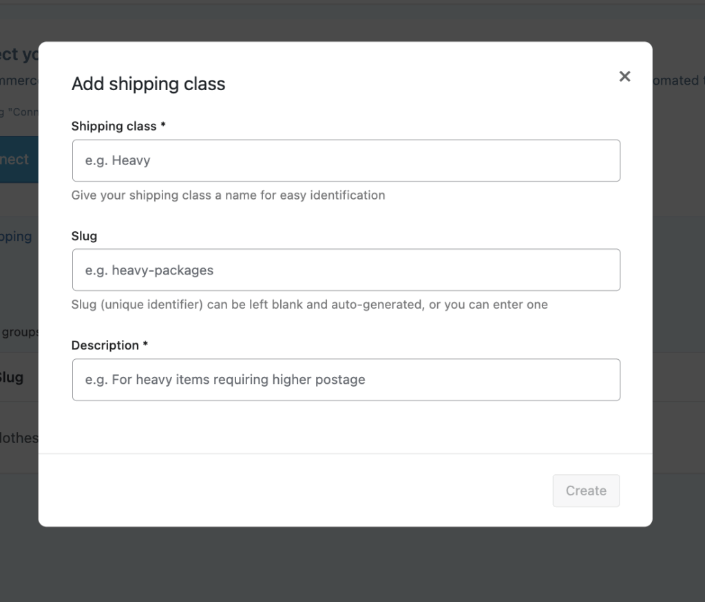Click the Add shipping class button. You’ll need to fill in three fields: