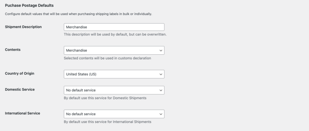 In this document we will go over purchase postage defaults settings of WooCommerce shipping plugin and talk about what they control and when you might want to change them.