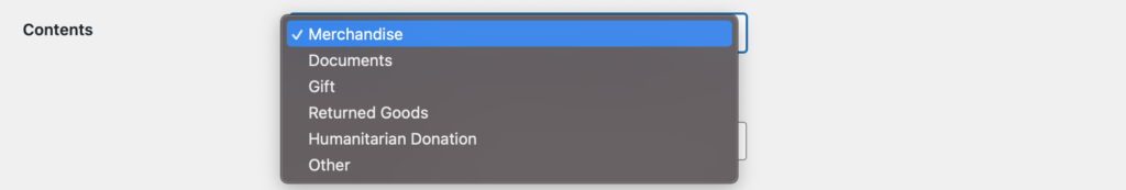 This is value should be set to one of the pre-defined by the carrier types of the content and it is used for customs declaration.