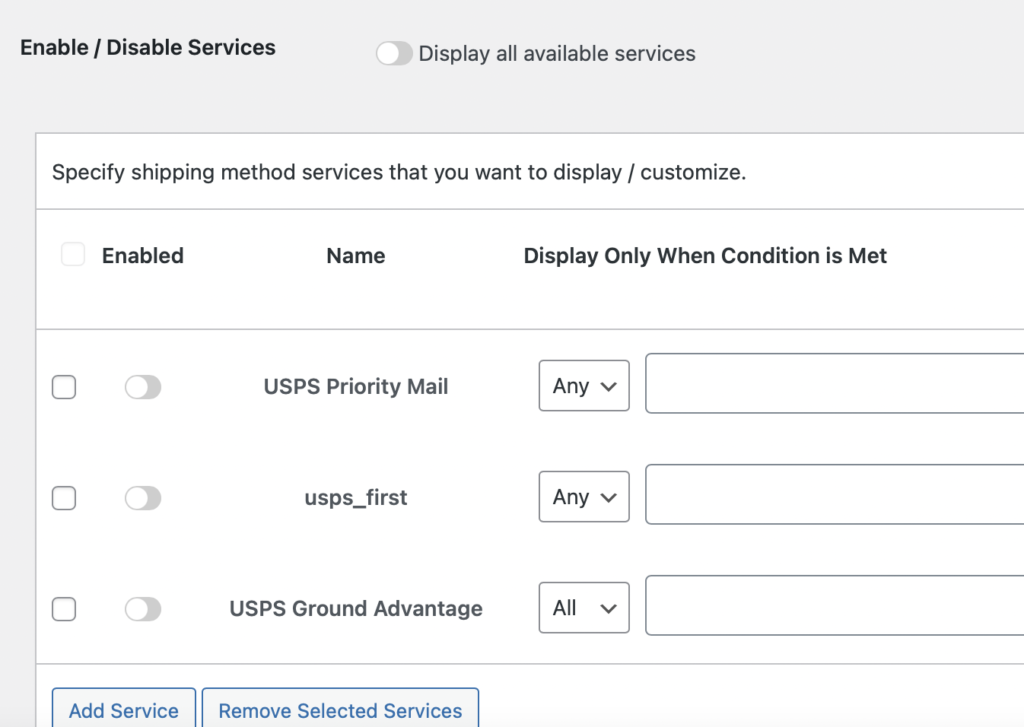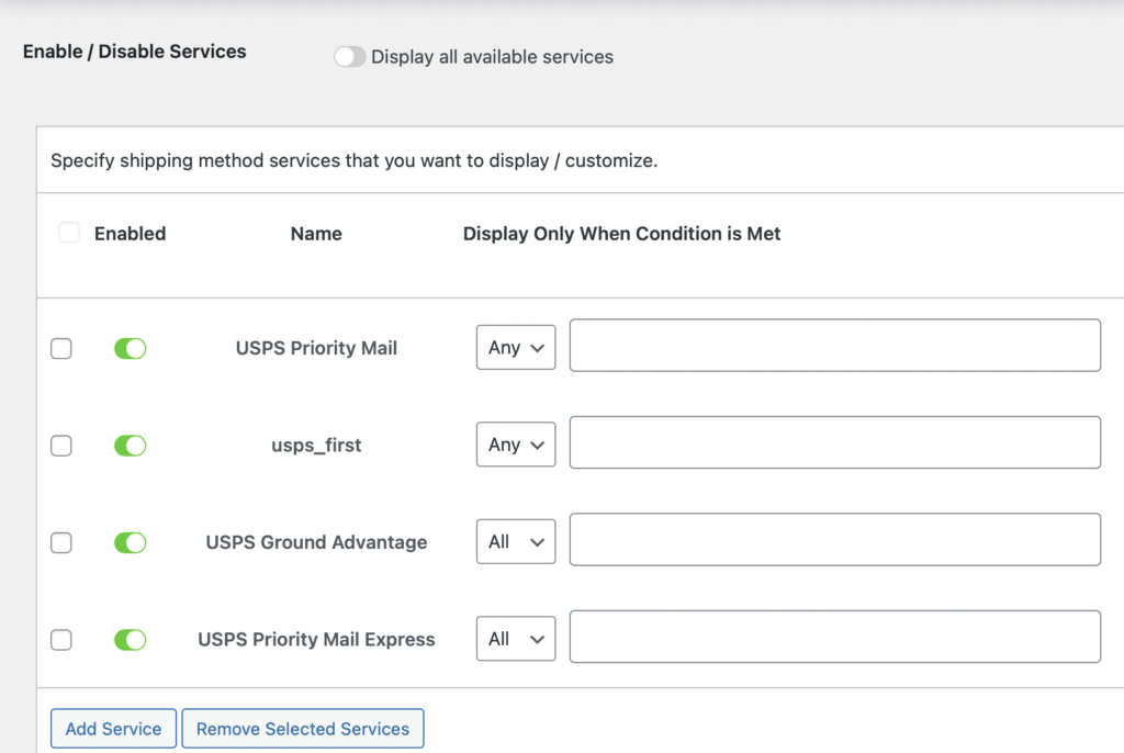 -Select “Shipping services” tab, and enable the USPS shipping services you want to use for USA area. —Click “save the changes”, so the plugin can save the changes.