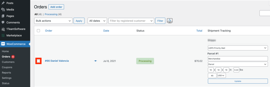 3. Choose orders you would like to create shipments for.