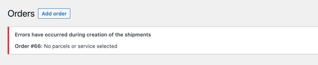 Any possible errors will be displayed at the top of WooCommerce Orders page.