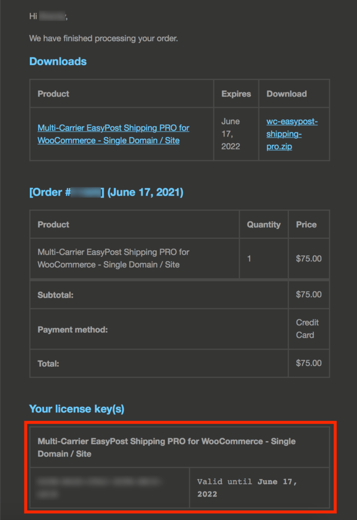 License key is required for plugin to work as well as to receive automated version updates. License key is sent as a part of your order confirmation email as well as can be found in your 1TeamSoftware account.
