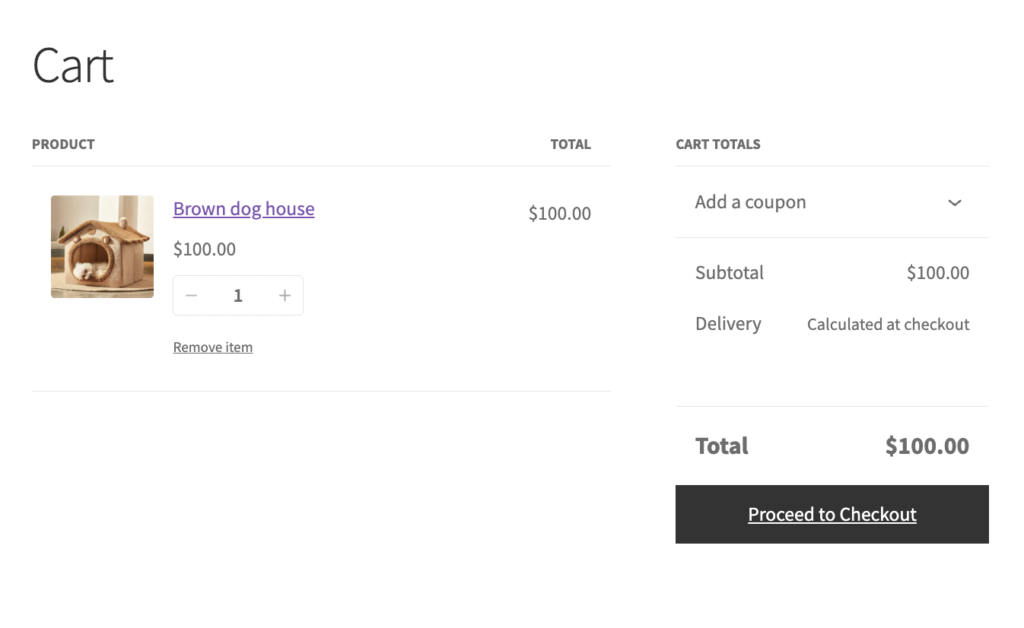 With these new settings, the cart will no longer display shipping destination information columns. Instead, it will display a message indicating that the delivery cost will be calculated at checkout. Please refer to the screenshot below.