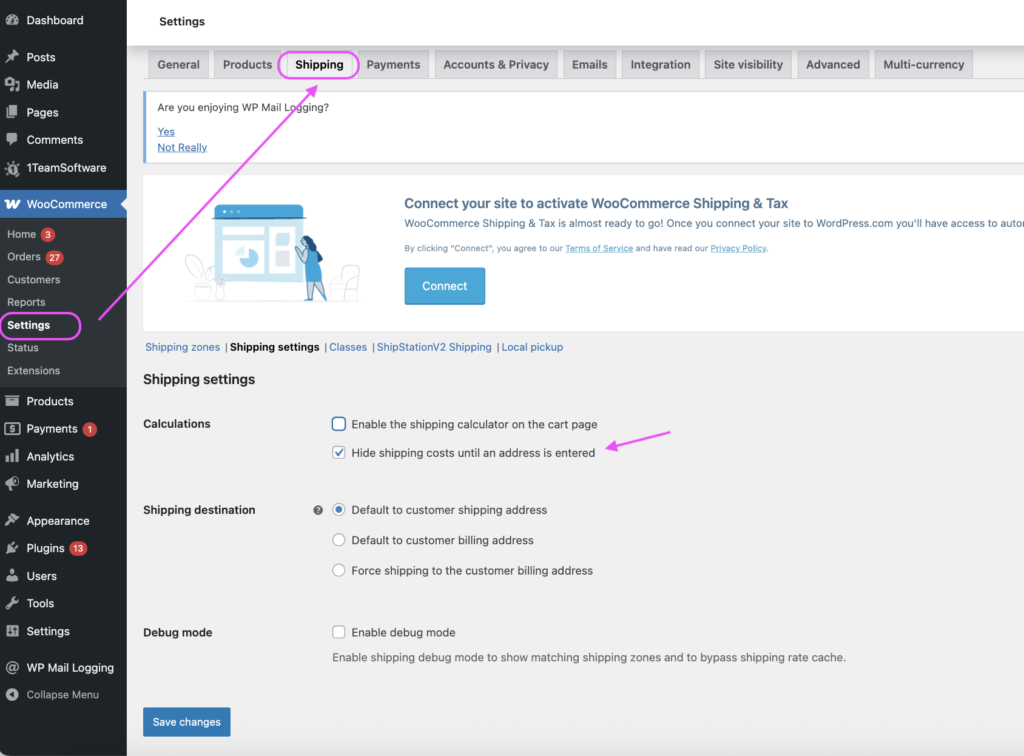 - Navigate to WooCommerce → Settings → Shipping Settings.