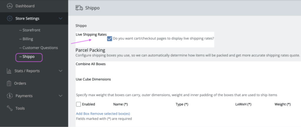 - Enabled the “Live Shipping Rates” feature in the settings.
