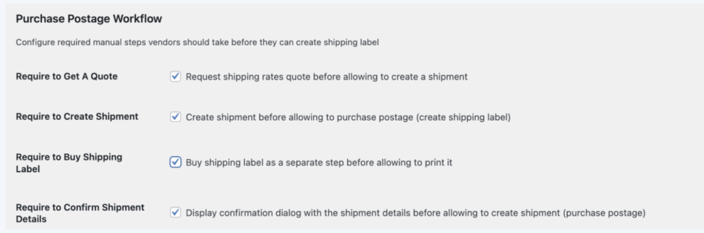 When not using sitewide settings, vendors can use their own carrier accounts to purchase shipping labels, even if they haven’t received shipping payments from the customer.