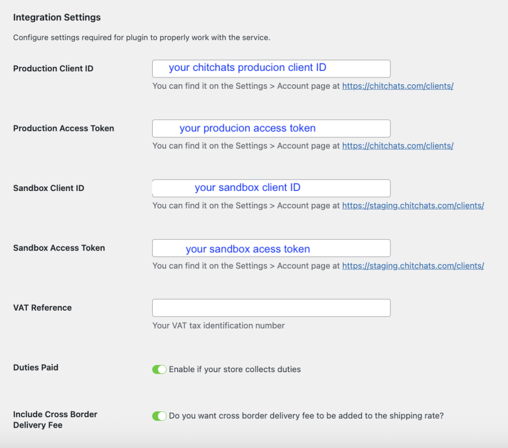This information is required in production mode for the plugin to retrieve live shipping rates from your ChitChats account.
