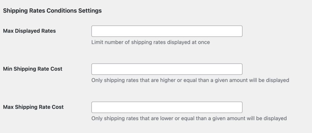 Common settings in the shipping plugins that can filter out shipping rates include: