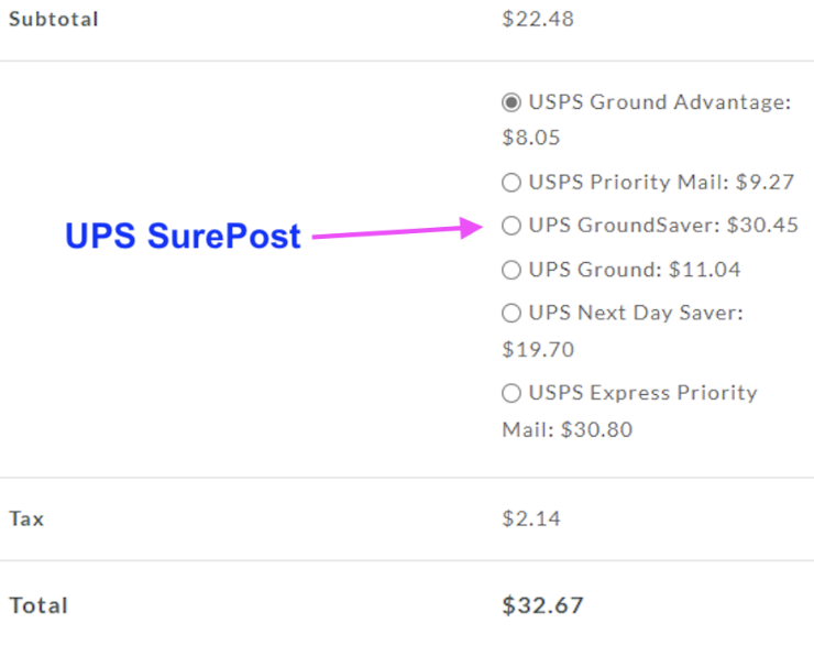 Instead, you’ll see UPS SurePost for selection, which is the same service but listed under its old name.