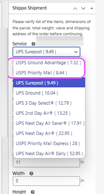 - When you proceed to create the shipping label, the corresponding rate will appear as UPS SurePost (the previous name) in the label generation interface, as returned by the Shippo API.
