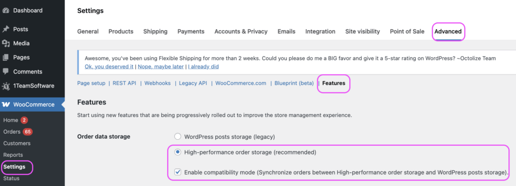 After updating WooCommerce, orders may stop syncing to the Shippo dashboard due to High-Performance Order Storage (HPOS) and Compatibility Mode not enabled.