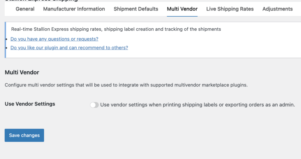 If you are using our plugins, such as Shipping Labels for WCFM or Shipping Labels for Dokan, together with the Stallion Express Shipping PRO plugin, you can enable the “Use Vendors Settings” option.