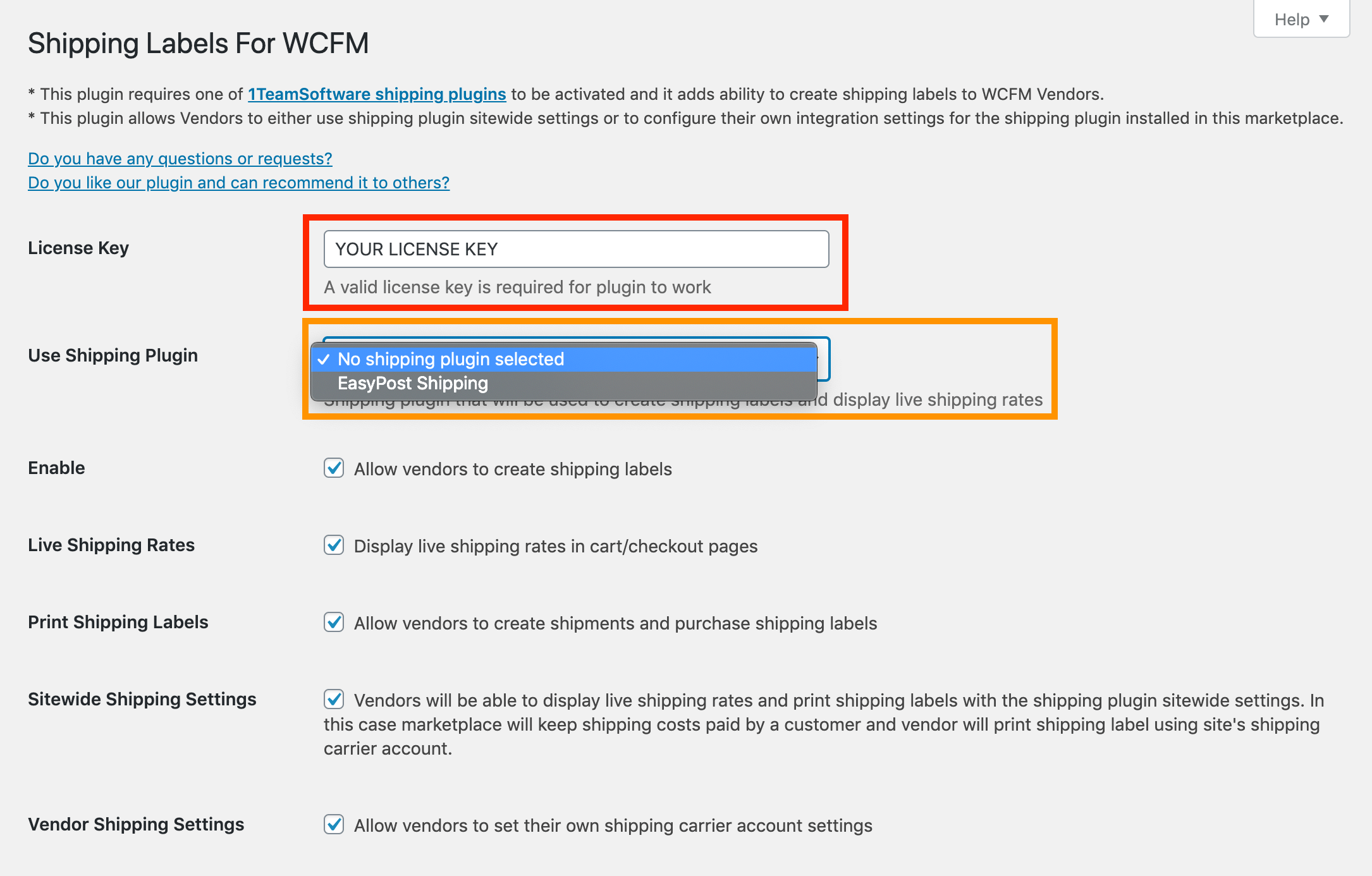 4. Enter your license key and choose shipping plugin you want to use for this integration